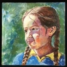Here is what I wrote after spending time gazing at Gwen's painting, wondering what satisfying secret this little girl was savouring.